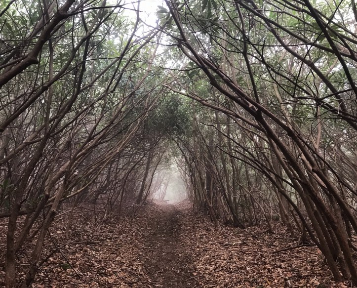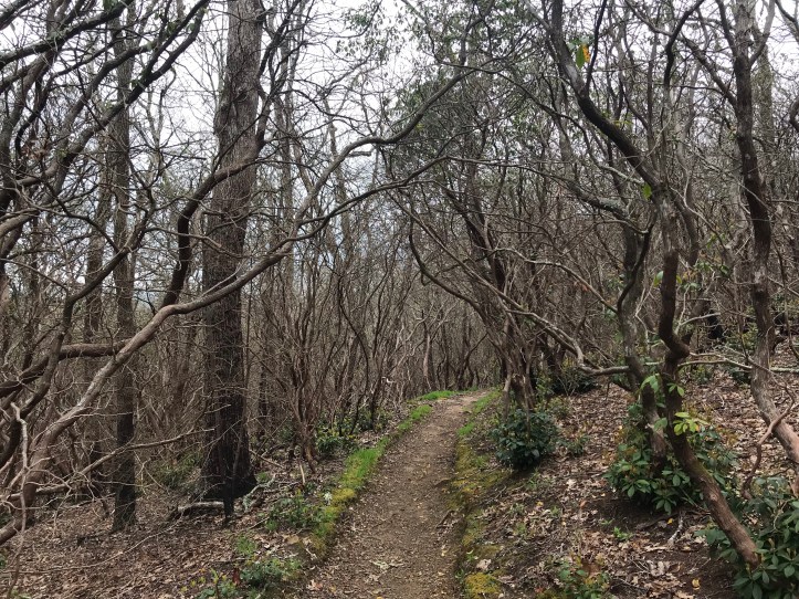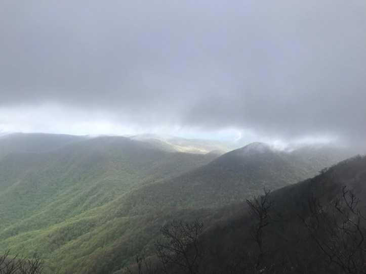 The air was Misty but not too chilly. I left camp wearing a long sleeve and I’m comfortable although my hands are a little cold. The Walk started with gentle rolling trail through rhododendrons and hardwoods that were shrouded in fog with bright spots of those blue little flowers. Standing Indian mountain is on today’s agenda. Maya will likely be ending up at the same shelter as me so that will hopefully make for decent company tonight. My little toe seems to be working itself out. Hopefully my feet don’t end up too wet today to ruin whatever callous has started to form.