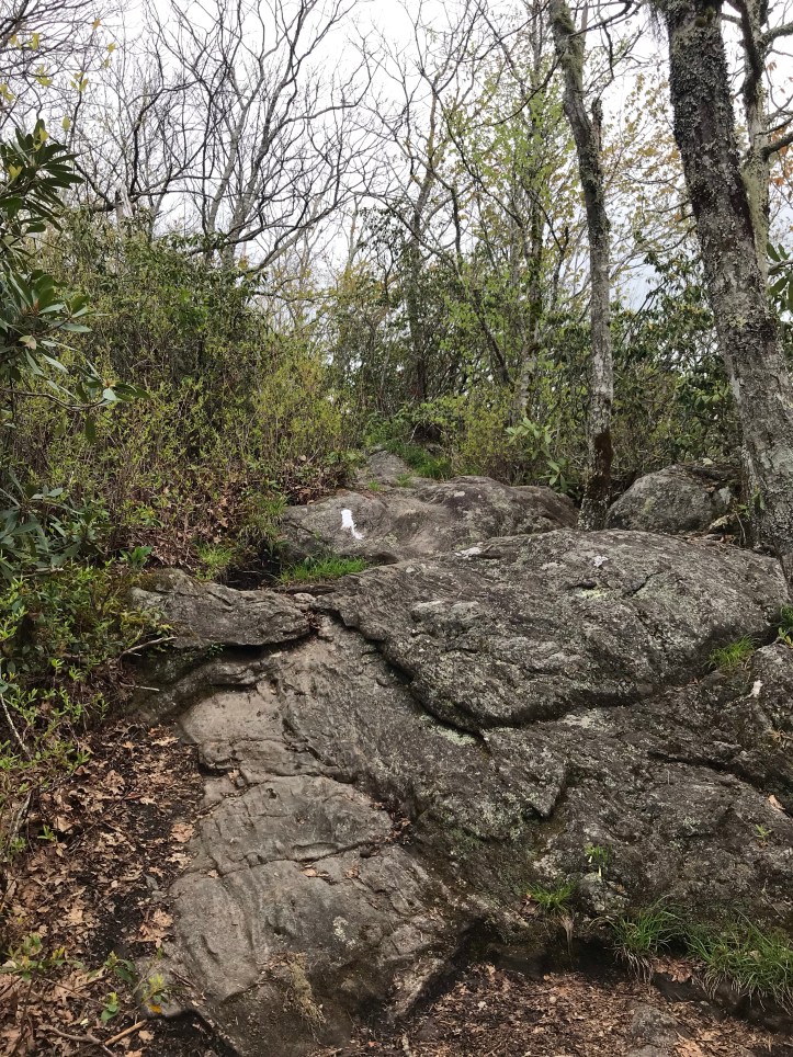 The unobstructed view lifted my spirits a bit and I welcomed the shade and cool breeze running through the rhododendrons when I dipped back onto the trail. Then the Forest opened up a bit and rhododendrons gave way to other trees, Birch and maybe poplar? I’m hoping to make it to Albert fire tower before it rains so I can get a 360 view of the surrounding mountains.