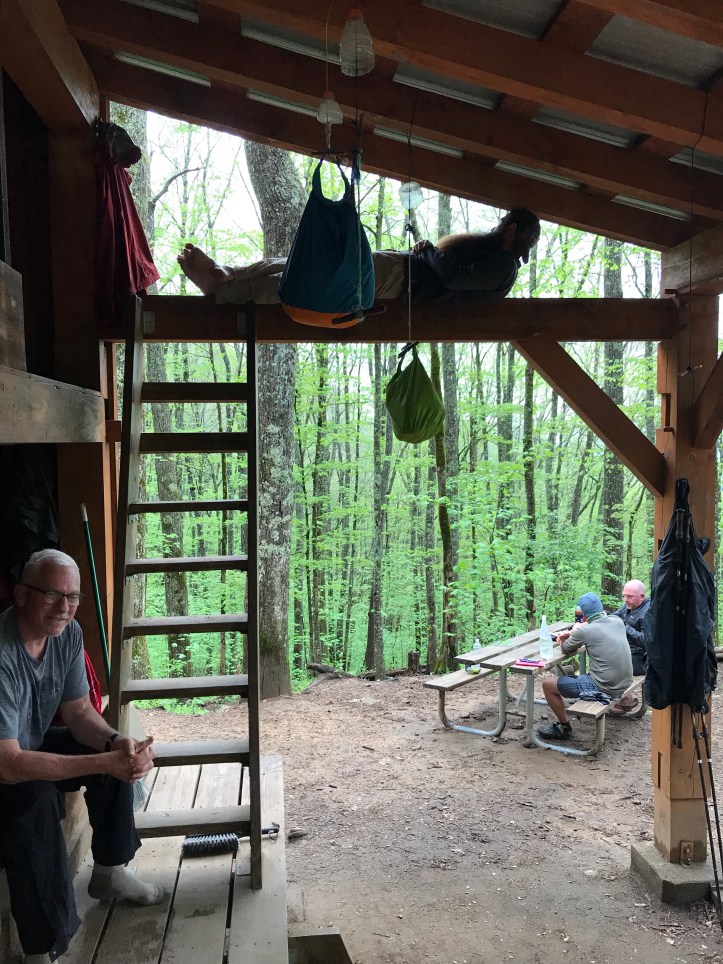 A sopping thru hiker came in for a little while, but he moved on when the rain lightened a bit. Then came the thunder and lightning. More thru hikers trickled in, all soaking wet and very pleased by the size of the shelter. They all did 16 miles today and came from the same shelter and have been hiking in and around each other for a week. Not exactly what I needed in the thick of my apparently inevitable tramily angst. Everyone is faster and hikes farther than me so I’m alone all day and I can’t keep up in terms of miles. At least that’s how it feels.