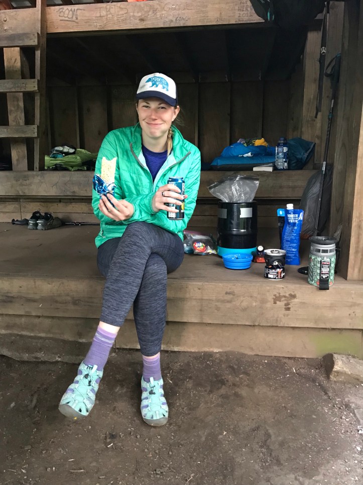 I read a couple of Oakland’s letters while I waited for my food. There was also a bit of a picture show and tell around the shelter. The group here is a good combo of older nerds, forgettable NOBO twenty somethings that kept to themselves and the usual suspects from last night with the exception of ranger and Thor who likely won’t make it this far. Jess kept saying she was full and kept pulling food out of her bear container, including this monolith of a rice krispy treat to go with her cider: