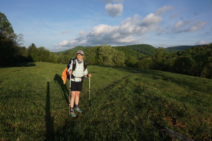As my mind lingered on those thoughts, I saw a lump in the trail up ahead and said aloud to no one, “hey! Are you a turtle?” And the answer was indubitably yes (today’s top picture). For whatever reason my mind went to my friend are RBJ formally known on the blog as “cotton” which is the same friend who took me to the hospital in Maine when I broke my arm. She’s by no means as slow as a turtle, but I thought about how fun it would be to have seen a turtle with her. She started her own hike on May 4 And is doing a flip-flop out of southern VA. Here she is on her hike: