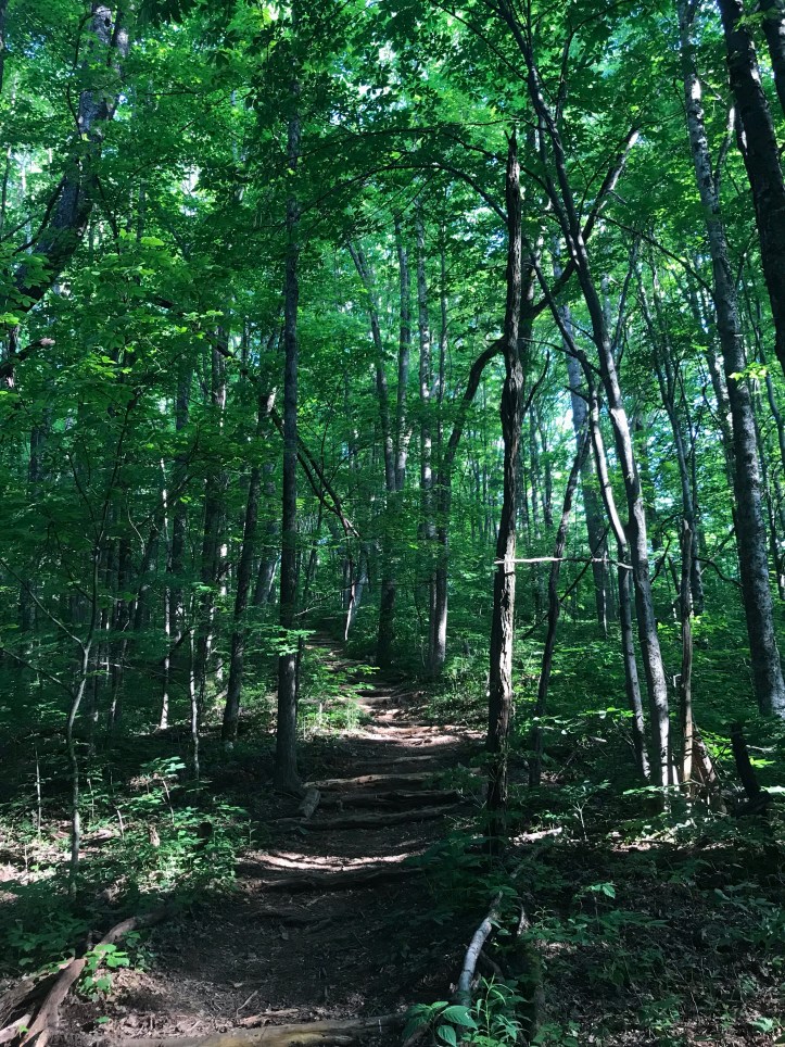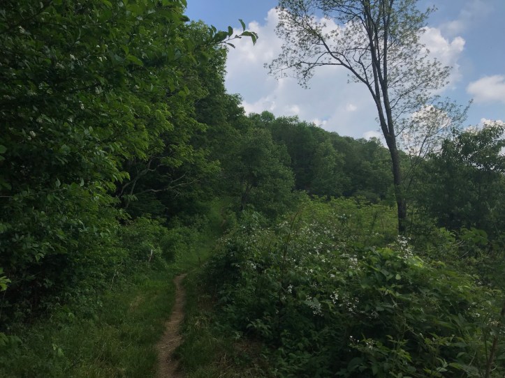 Most of today is supposed to be rolling hills which is good because per the usual flats are one of the harder sections for me. The woods were green with a slight breeze and tall groundcover. The sun filtered in from my right as I waded through tall grass next to an old barbed wire fence.
