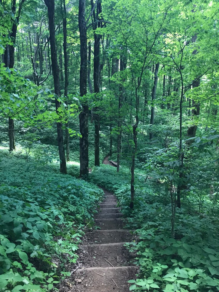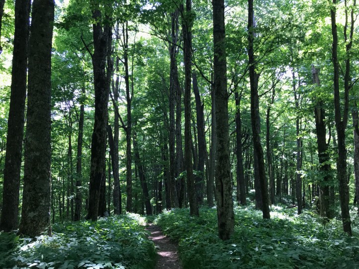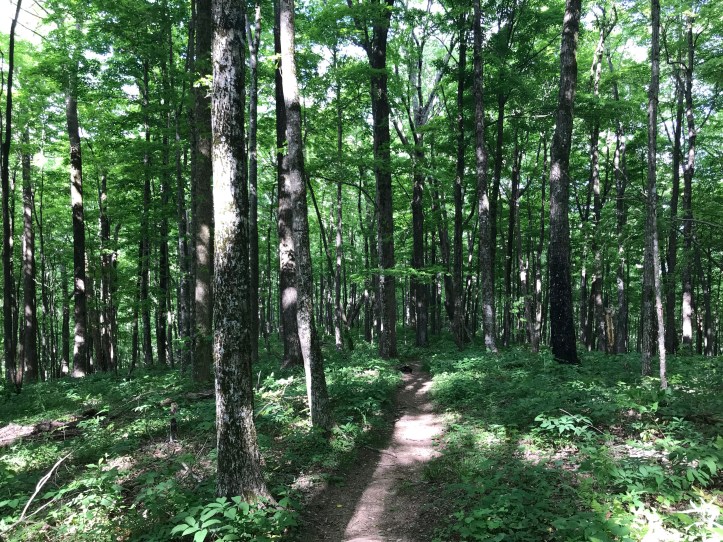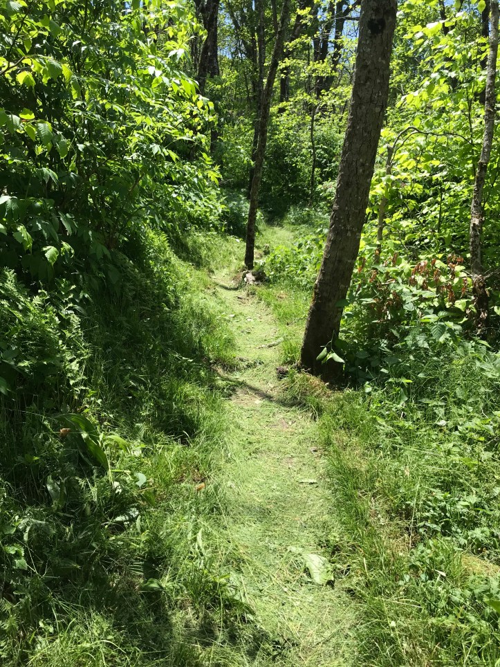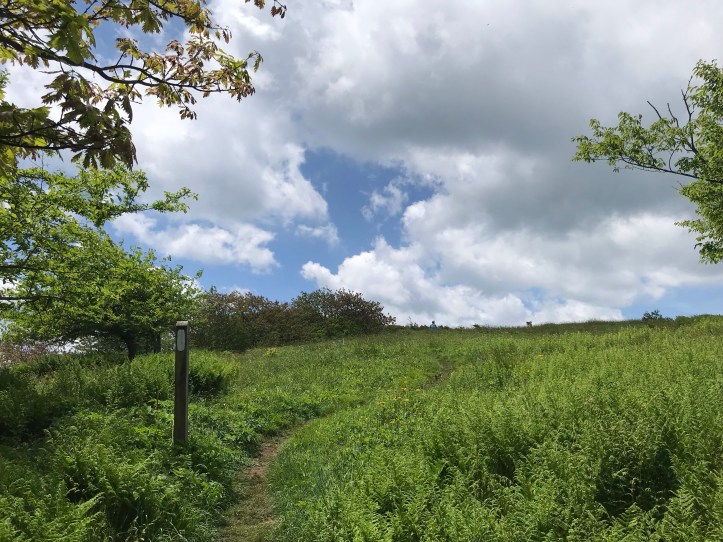 I Came to a small meadow right before the junction with a couple of driveways and heard a new bird but I couldn’t spot it in the high tree canopy. The trail crossed the intersection and took a short upward turn that eventually dumped me out into an open field that was beautiful but also a little hot. An older gentleman hiked past me and asked if he had seen me on the bald. I’m a little skittish of lone male strangers so I gave a noncommittal answer that required no follow up and we said a polite goodbye.