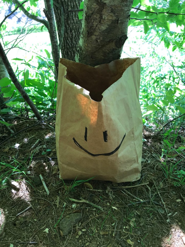 Right before the woods ended, I found a paper bag with a smiley face on it that had a milieu of hiker snacks.
