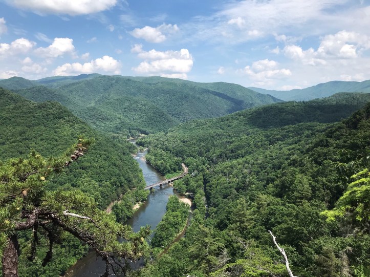 I eventually arrived at the infamous nolichucky overlook that I have seen dozens of times on other people’s social media (today’s top picture). I could hear tubers and other river-goers along with the sound of rushing water. I gawked and took a dozen pictures at two different vantage points along the trail before moving on. As I Turned the corner, it was like somebody turned off a noise machine. I was adjusting to the silence when a train whistle boomed up through the river gorge and startled me.