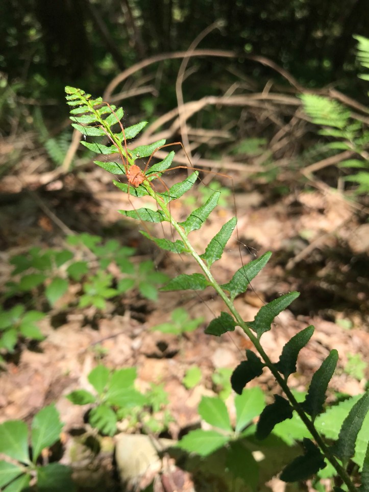 At one point, I stood drinking water and Saw a spindly red spider as a a mourning dove called from my left.