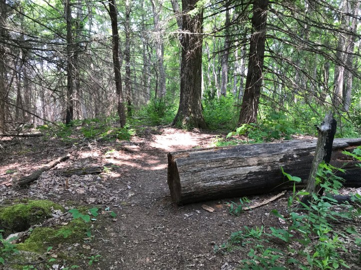 I kept hearing noises in the woods. I saw bear scat but no bears and heard the occasional caw of crows. I heard another large bird I didn’t recognize. I wondered if it was a raptor fussing with the crows. The seating options dried up right as I decided it was time to eat, and it took me 15 minutes of mostly uphill walking to find a suitable log.