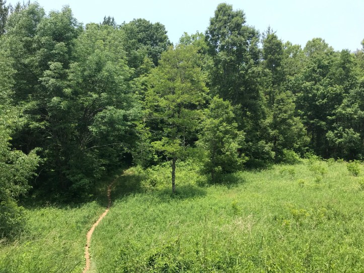 Brownie and dizzy left me a note about a twin bed available above their queen at their hostel tonight. I heard people coming and felt the urge to rush away because I’d been walking for 4 hours without having seen any humans. I didn’t rush to leave, but I did manage to walk away before the other hikers arrived. I turned around halfway up the calf straining hill after shelter and saw someone’s arm putting things down at the picnic table. I turned back towards the trail and continued up the hill tht was followed by a short flat stretch and then an even longer hill.