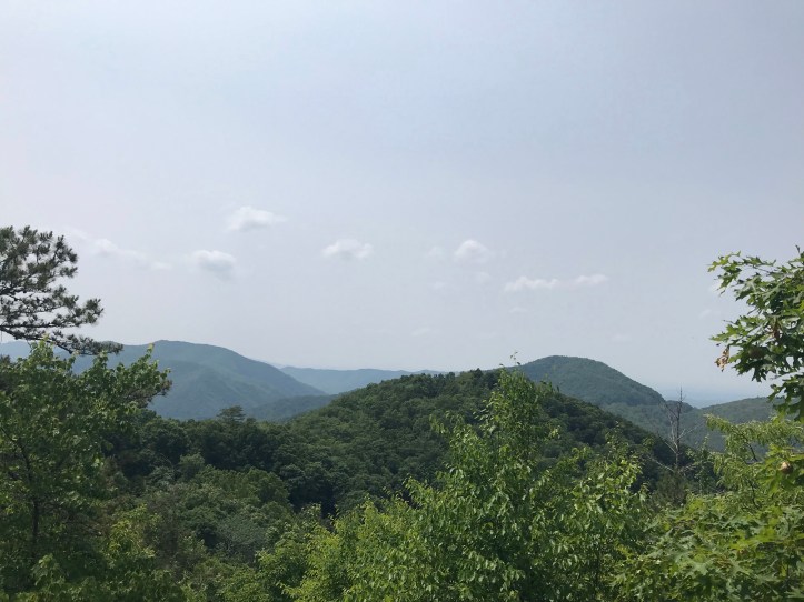 After about an hour of all the same terrain, I came to a set of switchbacks with a small picture window view. It led me down to Moreland gap shelter, which looked like an old softball dugout because of the cinderblocks.
