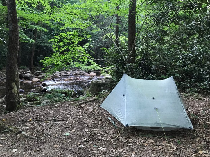 I checked the area for snakes before I sat down, a statement which dismayed Oakland. I also bemoaned where in the world I would poop in the morning because I don’t have any truly LNT options because of the terrain. River to the left of the trail and spring to the right of the trail means I might have to do what I imagine other people have done which is to use a small hidey hole in the rhododendrons right next to the campsite. There are large rocks here that I can use to cover it so an animal can’t dig it up. It’s the best I can do given that I’ve chosen to camp somewhere that one technically shouldn’t inhabit.