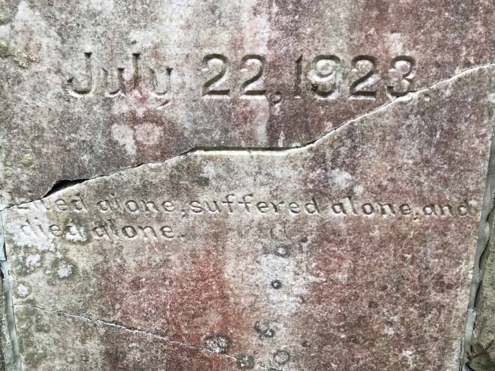 I passed a monument to a local hermit. The epitaph reads: “lived alone, suffered alone, and died alone.”