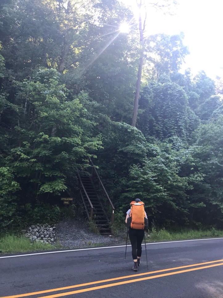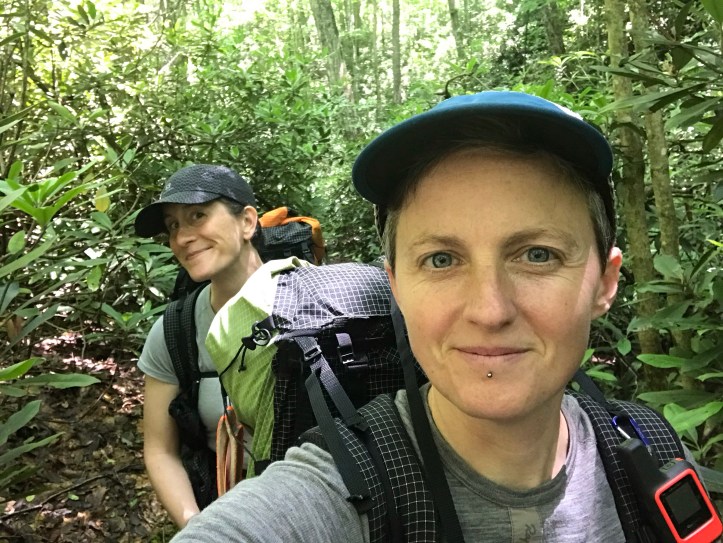 I had a choppy but cozy night of sleep. The resident mockingbird did not heed quiet hours and made a racket half the night. Literally. We dragged ourselves out of bed around 6:45 and went straight to packing our gear. Then we had breakfast out at the table. It was a feast of yogurt, blueberries, a banana, and homemade banana bread. We had a couple of pieces of banana bread that we couldn’t make it through so I walked into the bunk room and offered them to the masses. A guy in a top bunk sat up and said okay! He asked if he could join us outside so we sat with him for a few minutes. His name is Alex and he sounded like a friendly but antsy NOBO who didn’t know what to do with himself if he made it to camp before 7:30pm. He also said his body likes to move quickly. I replied that I didn’t have either of those problems and suppressed my eye rolling to the best of my ability.