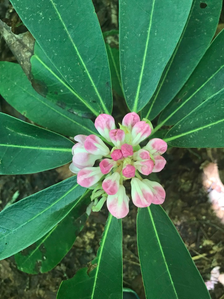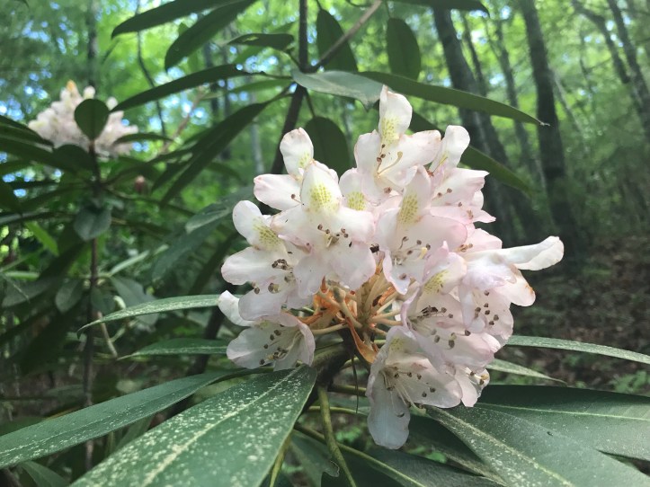 She reported that the pop tart wasn’t as sweet as she expected. We watched “snippy snip” wander up and down the trail grooming the rhododendrons as we ate to the sound of rushing water behind us and the occasional car passing by on a road out of sight.