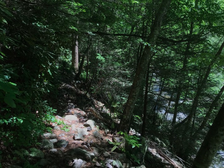 The creek raged far below the trail to our right. We passed a handful of campsites between the AT and the creeper trail before the creeper took a right turn and crossed the overflowing creek.