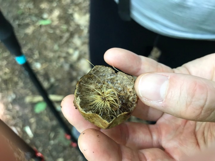 It seems that the whiny commenter was right; there were indeed 16 Switchbacks. We arrived at the second exit for the shelter around 3:45 (it has two access points as we went to the northern point). We stopped to investigate a pod that we’d seen often throughout the day and found this inside: