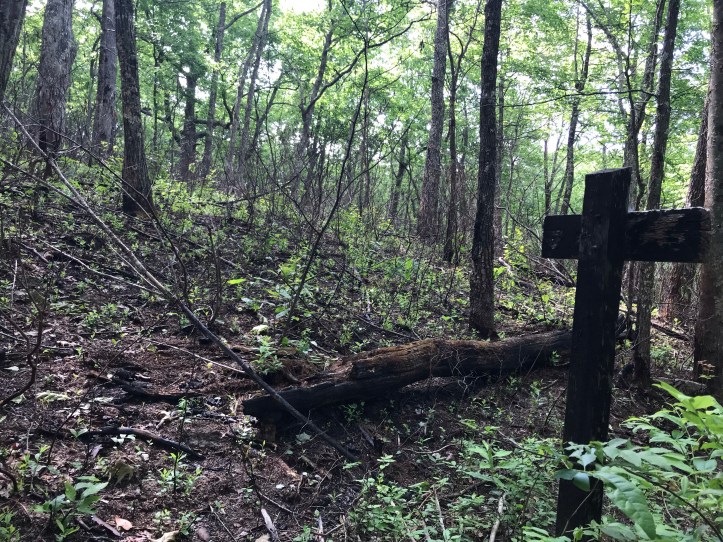 Just on the other side of the fence we came to the memorial for stronghold, the hiker who was killed in the VA attack. There was a picture of stronghold in a ziplock bag that I’ve seen in news articles. Oakland placed a pine pod on top of the memorial where others had placed change and small keepsakes. We both teared up standing there taking in the gravity of the memorial.
