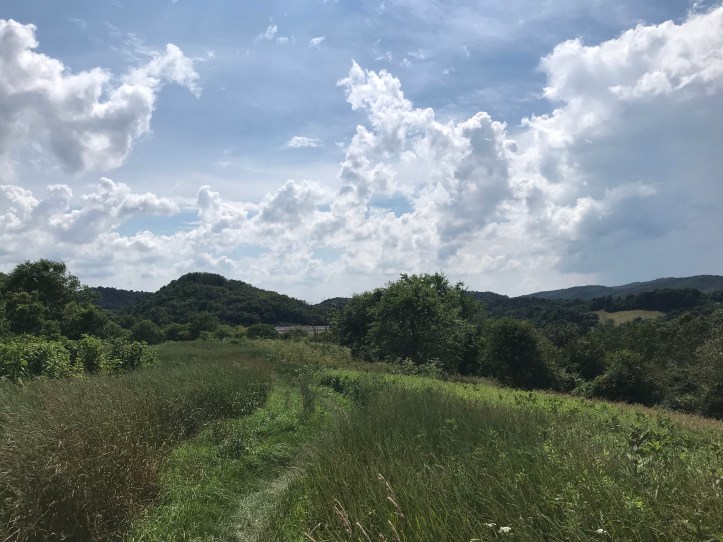 The Highway noise we’d heard for awhile got louder even though we were still quite a ways from crossing it. We Eventually went through a rat maze of twists and turns through overgrown trail that was covered in poison ivy and lacking in shade. It was a Steamy nightmare of itchy grass and fear of getting poison ivy. I didn’t take any pictures of it because I was so cranky.
