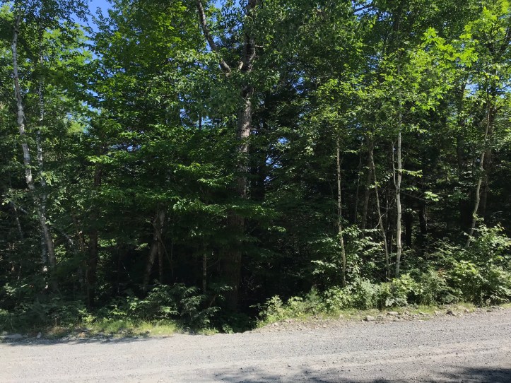 Around 9:30, we took a break on a log in a piney section where there were miraculously not that many bugs. We were tired and hungry but in decent spirits. We went over a few more ups and downs into hardwoods until we hit the consistent downhill towards Katahdin Ironworks road. It turned into pretty easy walking until the grade steepened over leaves and dirt. My knees protested. Oakland’s shoulder and left arch were both bothering her and the hill didn’t help.