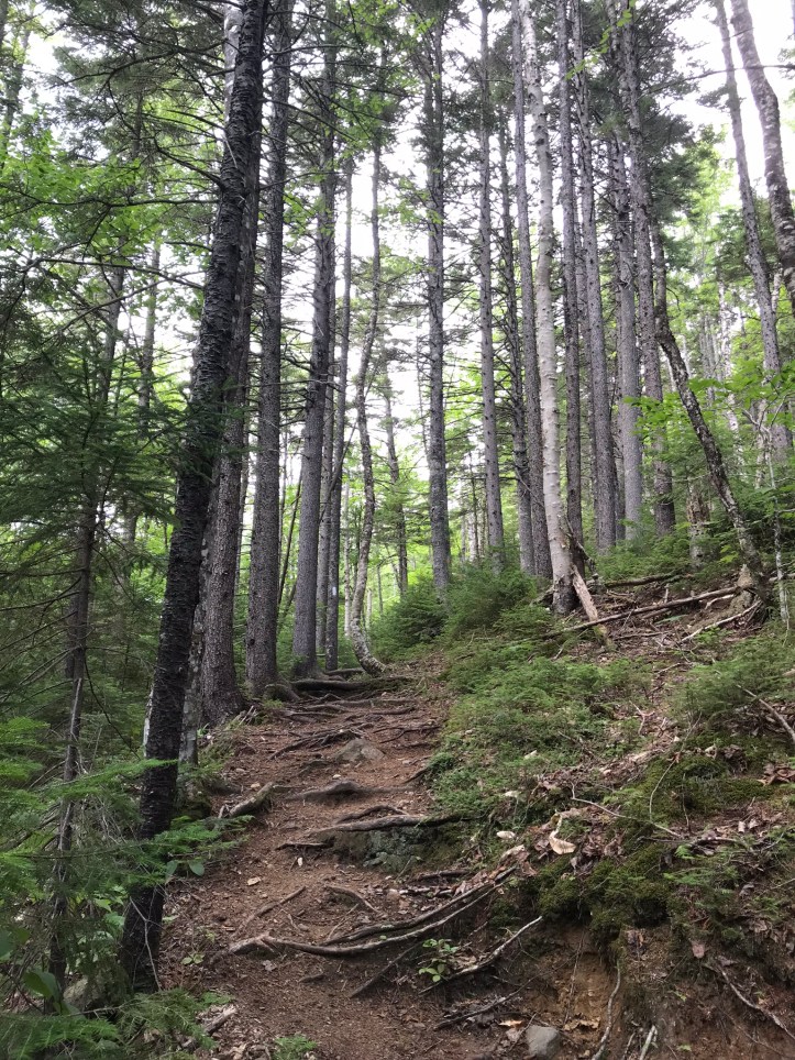 After the slabs, the trail turned into an average Maine descent with rocks and roots and the occasional mucky section.