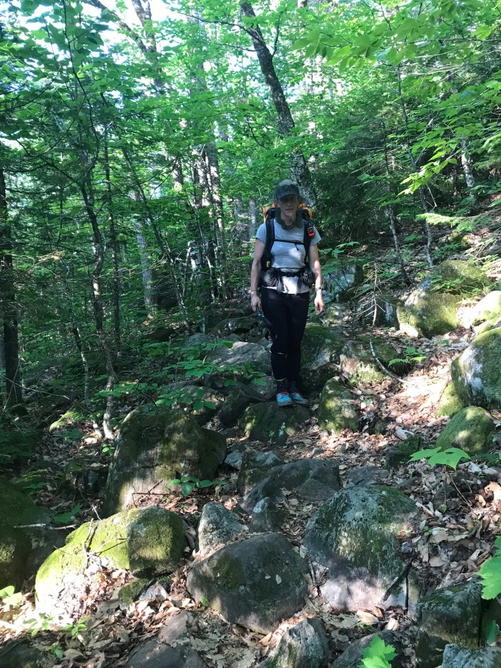 We continued north for a few minutes before finally giving in to another round of deet because the mosquitoes seemed unperturbed by our original application. I got 3 bites in the process of putting my pack down and removing my deet from my hip pouch, two of which happened simultaneously on my left calf. Side note: I never did manage to control my rage after the tell-tale stinging sensation of a new bite, even though we got dozens of bites daily for the rest of Maine.