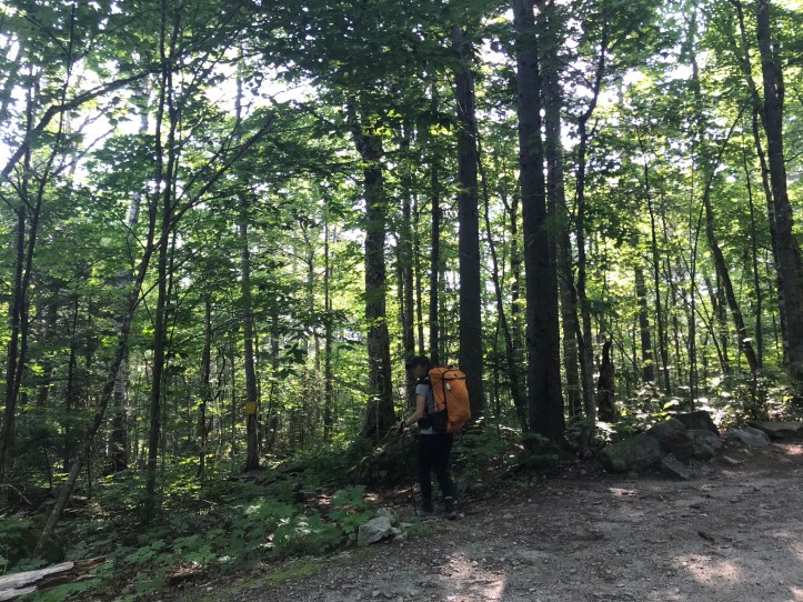 Three NOBOs arrived as we sat down to eat a few snacks and finish our sodas. Their presence made me itchy about camping space, so I casually asked where they were headed for the night. They said, “Antlers,” which sent me into logistics overdrive because that was our destination (per a recommendation from Halfway). Oakland and I silently made a plan to leave as soon as possible to try to get to Antlers before the trio. If more than one youth group had the same plan, we could find ourselves in tight quarters. We made short order of the rest of our re-org, gave the Shaw’s employee our empty soda cans and bid half-hearted goodbyes to the NOBOs who had made little effort to engage beyond answering my question.