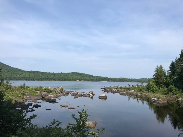 We eventually curved around to catch a glimpse of a large pond. I mistakenly thought it was the body of water for our destination, but it was actually Mud Pond.