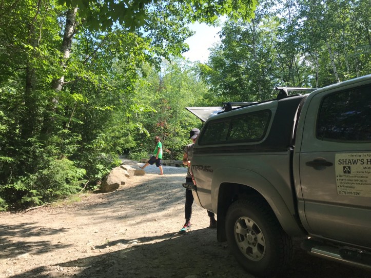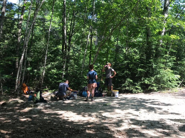We did our best to relax and the time passed quicker than I expected. By 2:30, I started to get anxious about missing the truck should it arrive earlier than expected. We reassembled our shoes and made our way back to the small gravel pull-off at the road. The Shaw’s truck arrived at 2:45pm. The shaw’s person (whose name I did not write down), handed us our respective buckets, and we cracked open our not-quite-cold sodas. As I moved my supplies from the bucket to my food bag, I found all of the chocolate bars soft and much flatter than I had expected because they had melted in the bed of the truck on the drive from shaws. I was so irritated. There was room in the extended cab to keep the bins inside. Why hadn’t they thought about temperatures during transport?? They SELL THE CHOCOLATE. Of course they’re also going to TRANSPORT the chocolate. Clearly, I have strong feelings because dessert represents one of my small joys on trail. Did we get our food? Yes. Is that the most important outcome? Yes. Did I grouse about the chocolate at dinner? Yes.