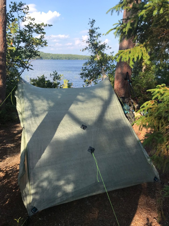 The tent barely fit into the postage stamp site, but we made it work. I finally gave up on my raincoat because it was just too hot for the extra layer. We went down a small bank and explored the beach and the point that extended into the water. The breezy side was delightful, but the sunny side with still air had the added bonus of biting flies. Kids tromped around in the lake, which looked like fun and also made me grumpy because that was our water source. A new hiker arrived, and he mentioned wanting to go swimming as we set up his tent. I said in as agreeable of a tone as I could manage, “okay, but don’t pee in it because it’s our water source.” I don’t remember his reaction, but I’m assuming he was nonplussed because I didn’t make note of anything.