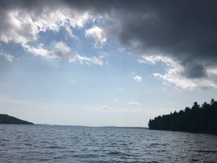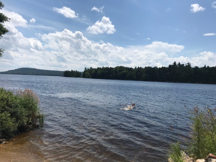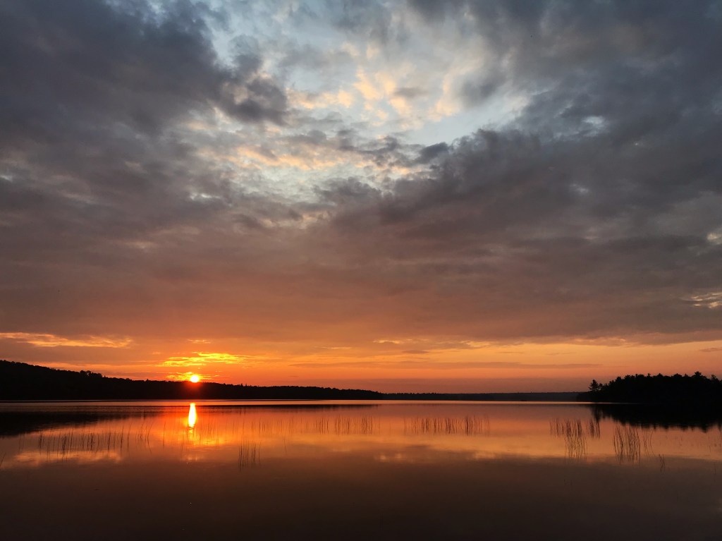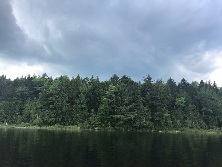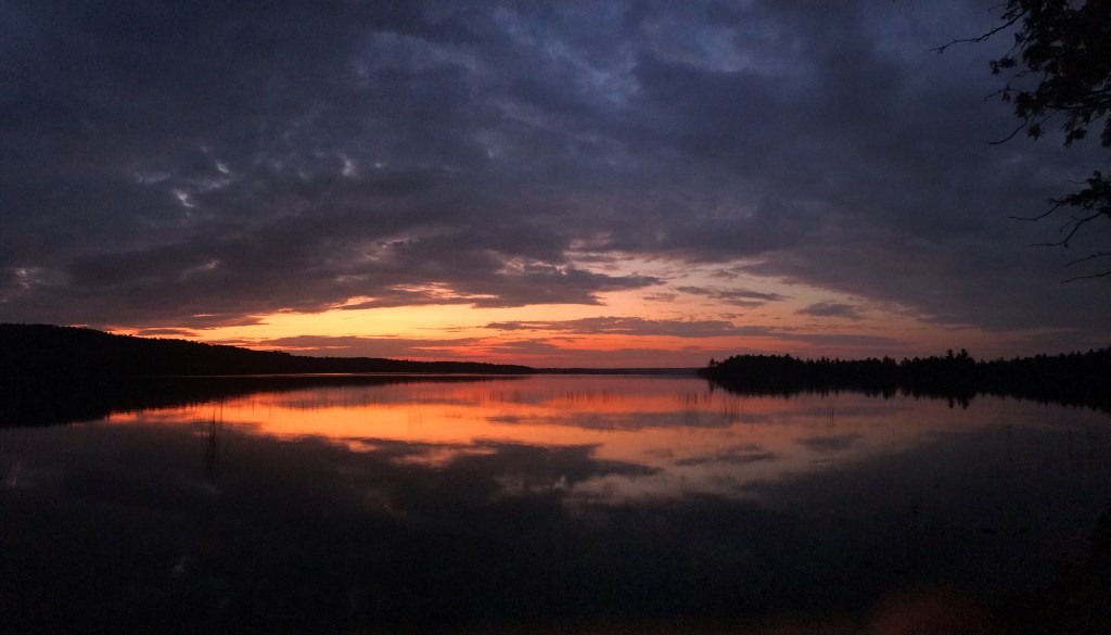Oakland and I said goodnight to AB and closed the door to our wood paneled paradise. As we settled into bed, I heard the unfortunate buzz of a mosquito somewhere in the room. I left my headlamp on so I could kill the unwanted guest and prevent it from biting us in our sleep. Oakland gave up pretty quickly, and turned away from my light. I finally felt it land on my arm and killed it with a swift slap of the hand. The satisfaction wore off quickly as I realized that there were probably more winged intruders flitting out of sight. Oh well. I worked on my notes for the evening with Oakland’s phone while the mournful cries of loons rose from the lake. I’m finishing this to the sound of water lapping against the shoreline, the evening symphony of bugs, and the occasional gust of wind moving through the trees.