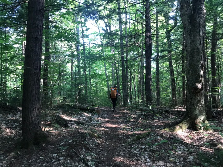 We each ate a handful, but we couldn’t stick around long because the bugs were horrendous. Shortly thereafter, we reached the Mahar tote road, which was our side trail to the White House Landing pickup. We had planned a NERO at the lakeside, off-the-grid hostel, and the timing couldn’t have been better. My stomach had slowly quieted down, but I was in no mood for a long day of hiking.