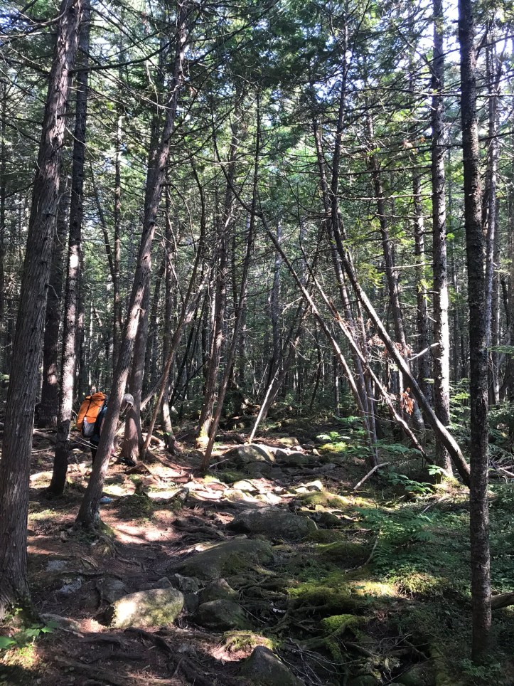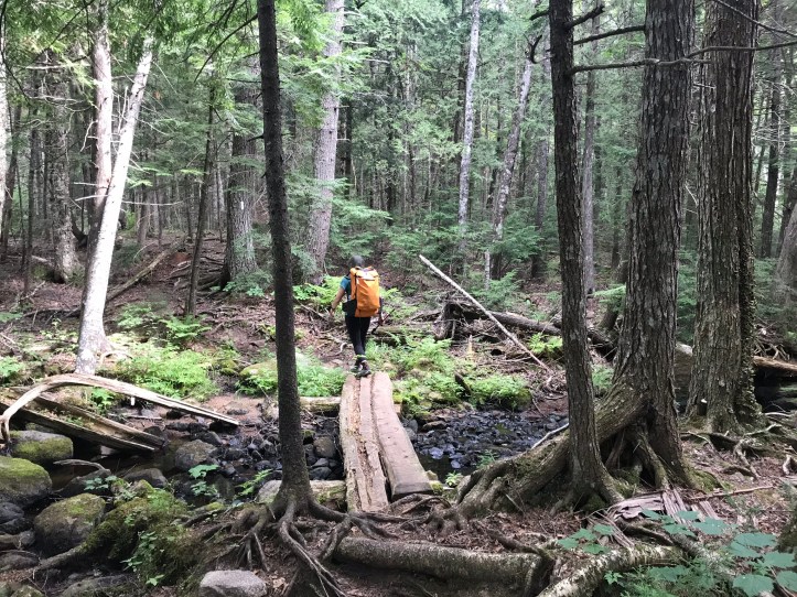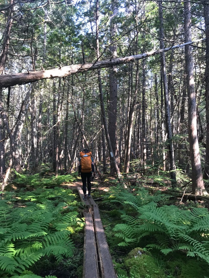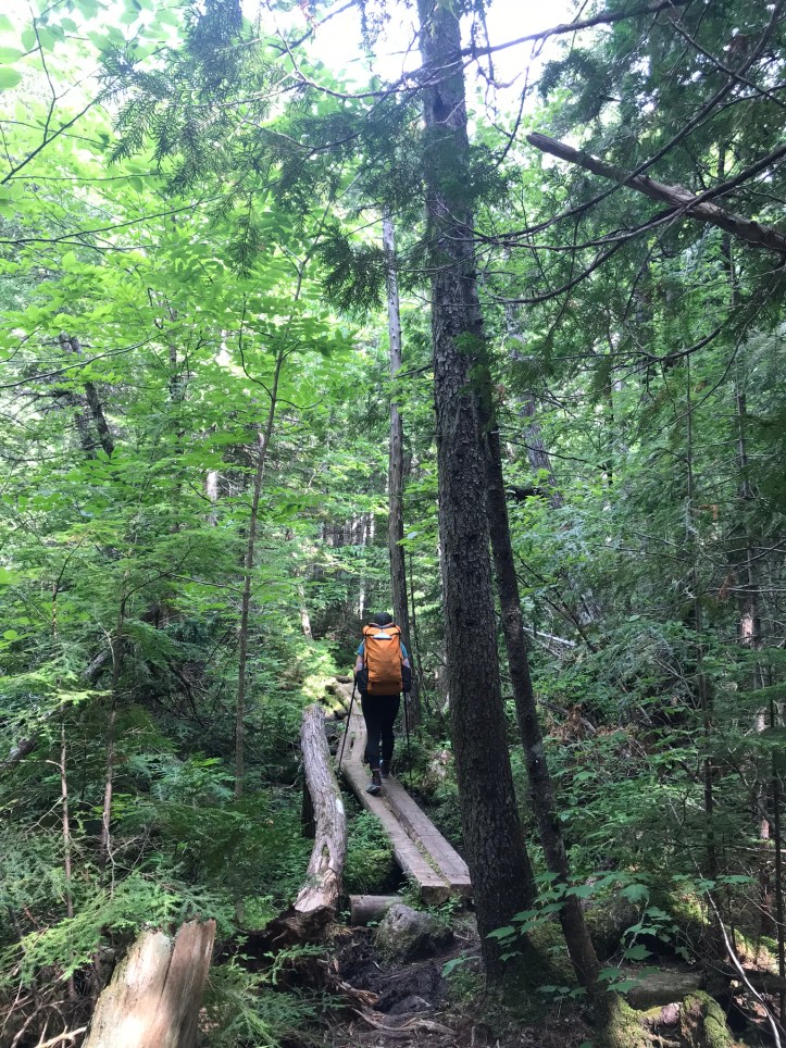 There’s not much to describe about the trail other than it was far more reasonable than I expected. There were the occasional rooty roller coasters, but they never lasted longer than a hundred feet or so. There were also several long stretches of bog boards in varying states of disrepair with a handful of shiny new planks peppered throughout the walkways. I could see deep footprints in the mud alongside the bog boards, which felt perplexing to me. Why make that choice when the trail maintainers have tried to steer you in a different direction? Here’s a selection of pictures from the first couple of hours: