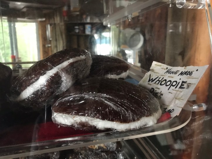 We all walked to the main building where Bill showed us the communal eating space and a small resupply, complete with homemade whoopie pies.
