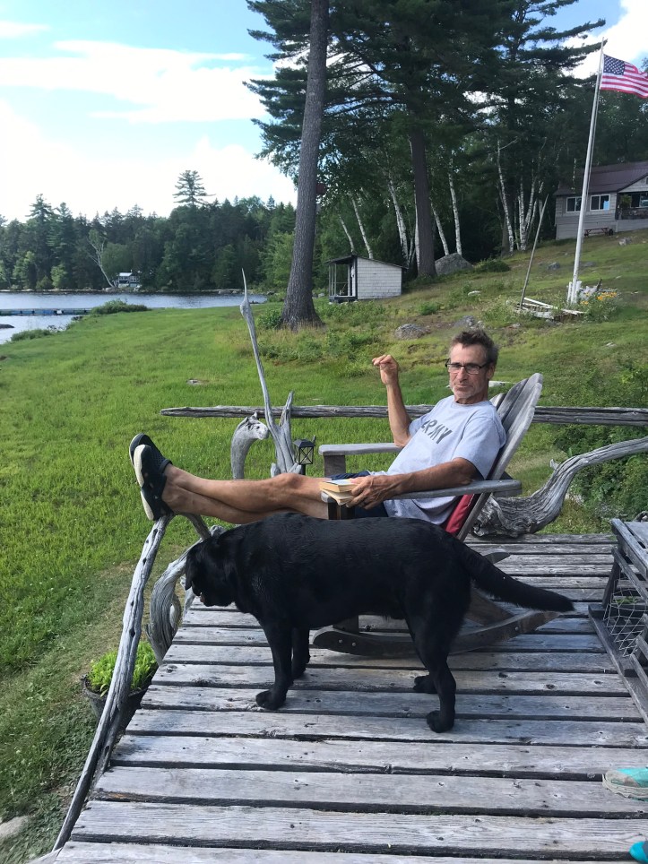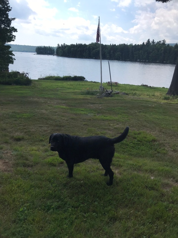 I hung our semi-clean hand towels and our wet swimming clothes on the line next to the cottage in the vain hopes that the sun would dry them out before morning (semi-successful). At some point during the afternoon, we spent some quality time with the dopey black lab whose name I didn’t write down.