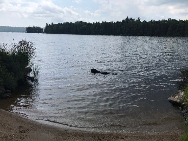 Creature feature: a few frogs, a small snake, small black fish in one of the ponds, the big dopey whitehouse landing black lab, loons flying across the lake, and the ravenous NOBOs