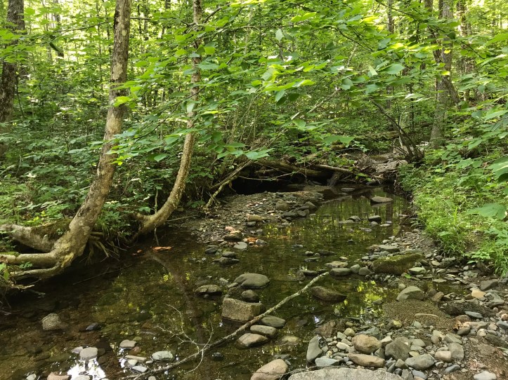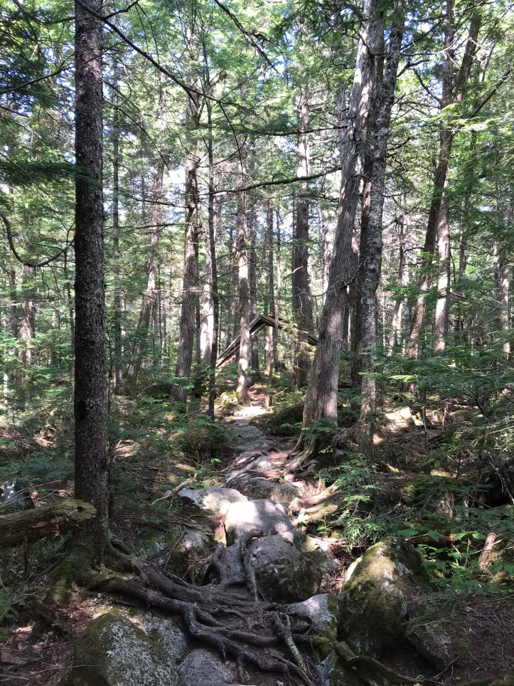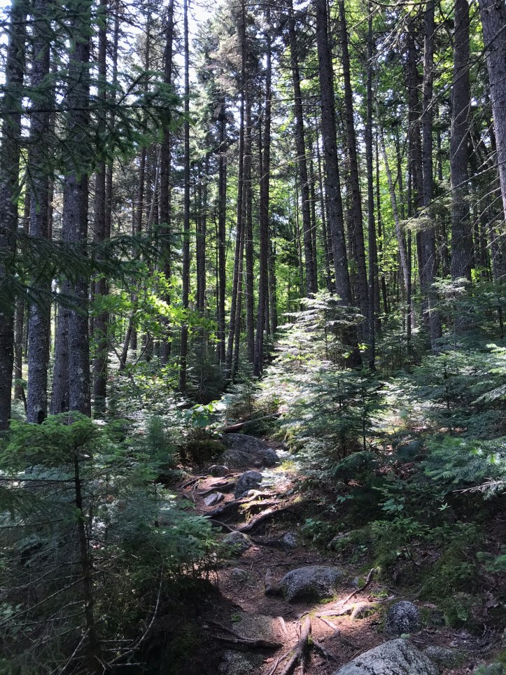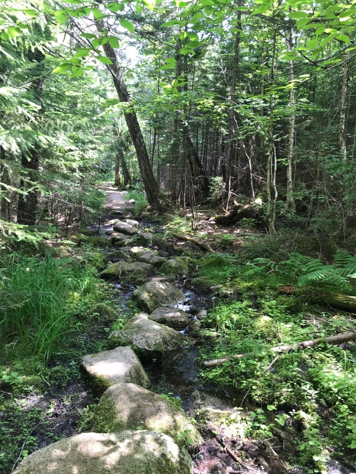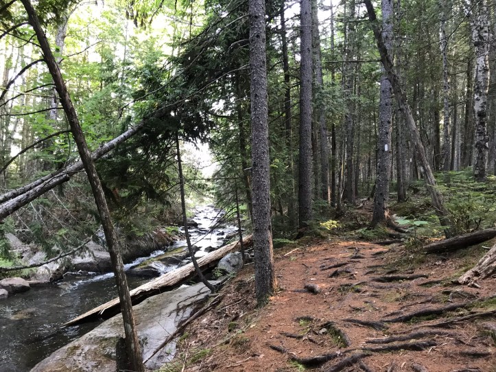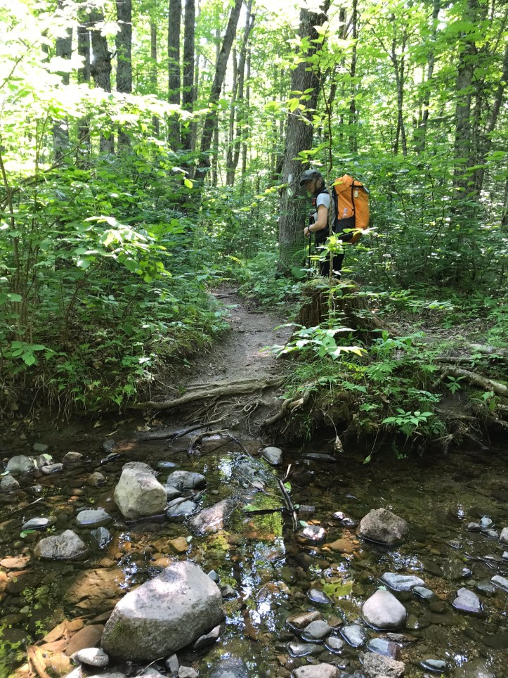 The morning started by crossing Rainbow stream across a manageable rock hop with steps that thankfully weren’t loose. Then we went up over piney hills with the stream to our left. I had to stop to remove what felt like a forest in my shoe (actual contents: one pine needle).