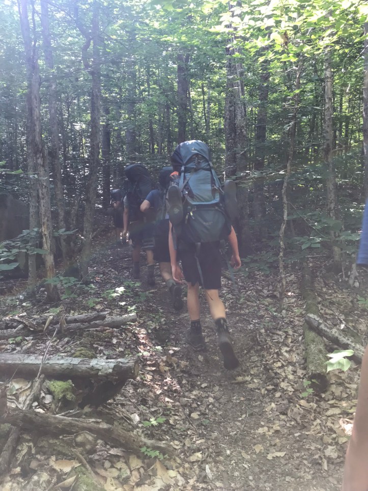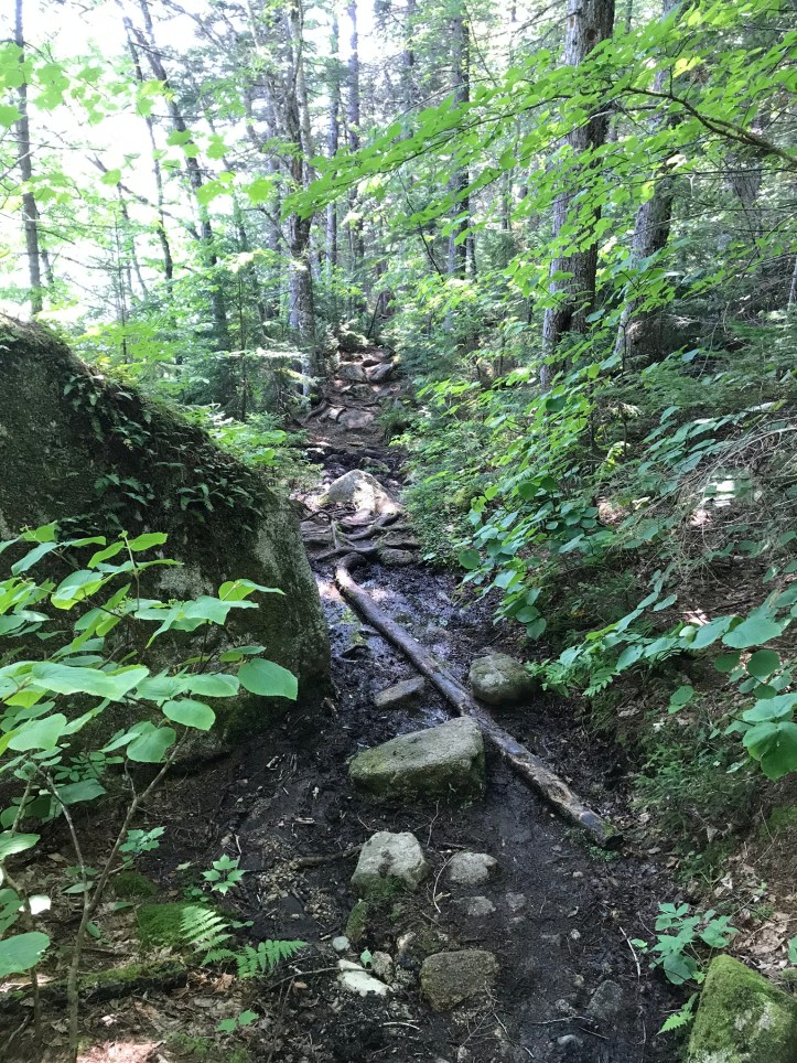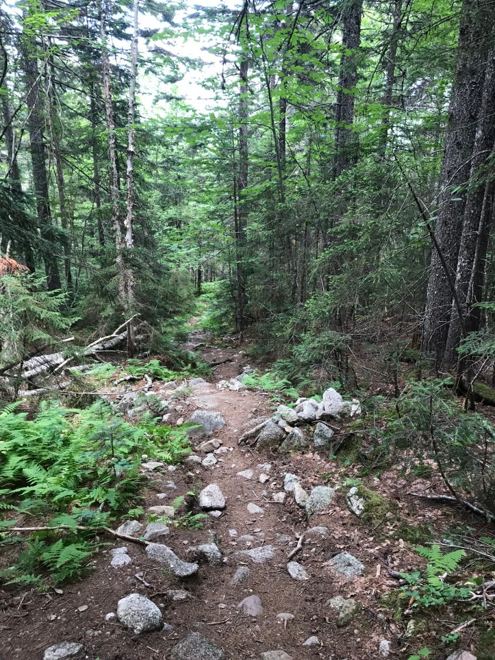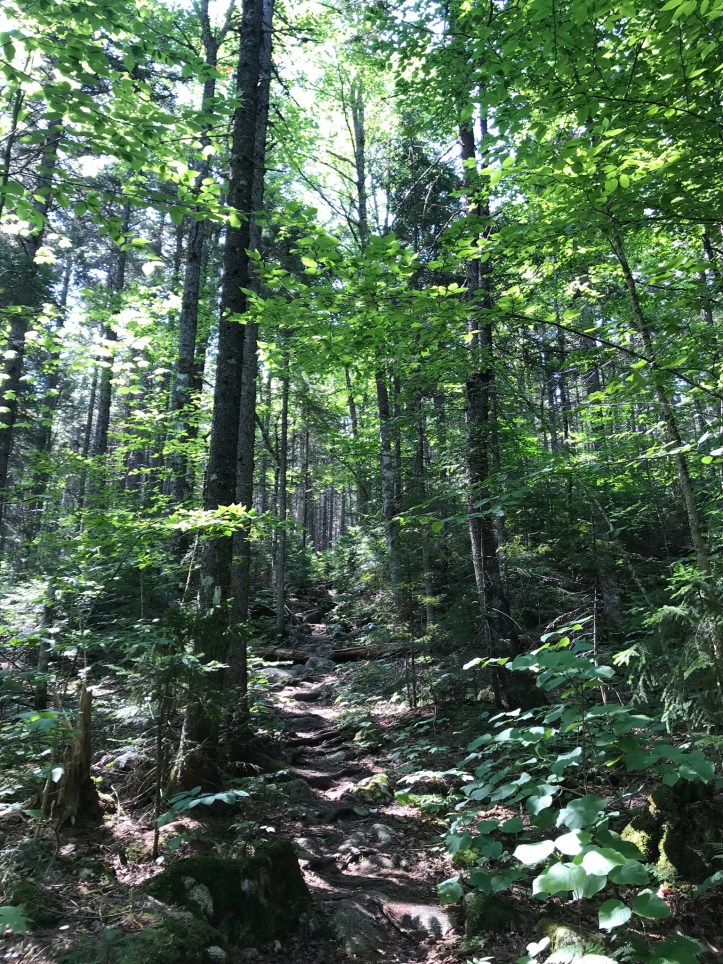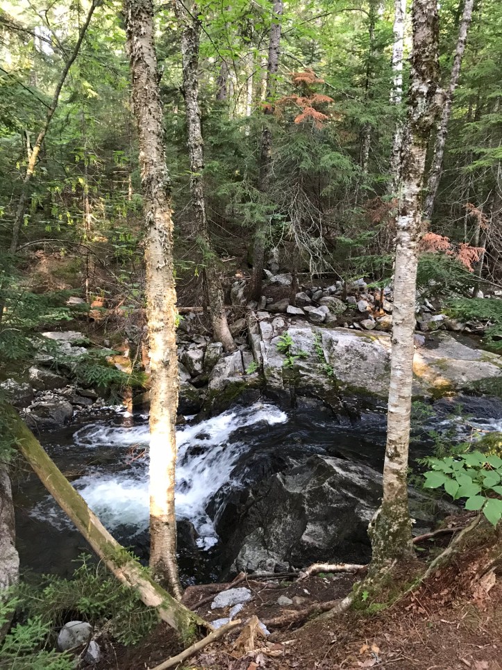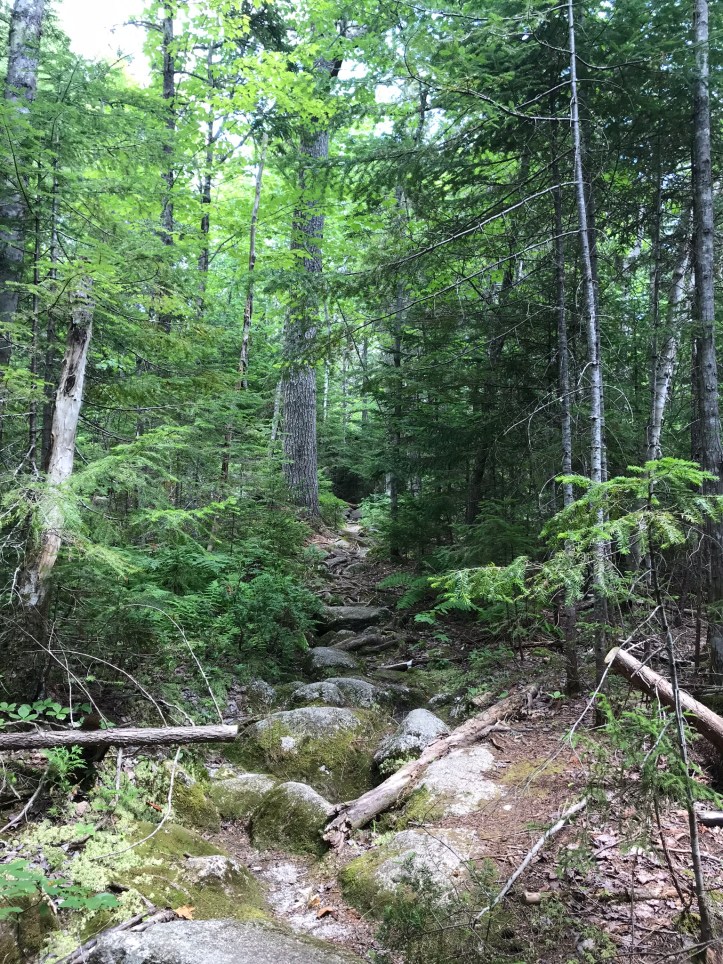 The morning started by crossing Rainbow stream across a manageable rock hop with steps that thankfully weren’t loose. Then we went up over piney hills with the stream to our left. I had to stop to remove what felt like a forest in my shoe (actual contents: one pine needle).