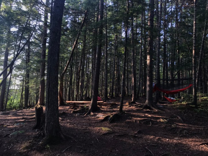 We returned to find our new neighbor settled onto a rock by the fire pit about to make her dinner. We decided to join her rather than be insular. I was sad to leave our higher rock perches for the low logs around the fire pit, but we had an enjoyable time getting to know a bit about Mary Jane. She’s 67 years old, is a retired traveling nurse with grandchildren, and she hiked 436 miles of the trail last year and started at Katahdin a couple of days ago. She said she’d been excited and dubious about the project, but her husband and children had been supportive of her abilities, so off she went. We all happened to have ramen for dinner. Oakland and I ate tuna packets with ours, then a few Fritos and half a snickers each. Mary Jane kept describing her last section hike as horrible, so I finally asked what had kept her going. She said “Determination, I guess.” Aka sheer stubbornness, which is pretty much a requirement for long distance hiking.