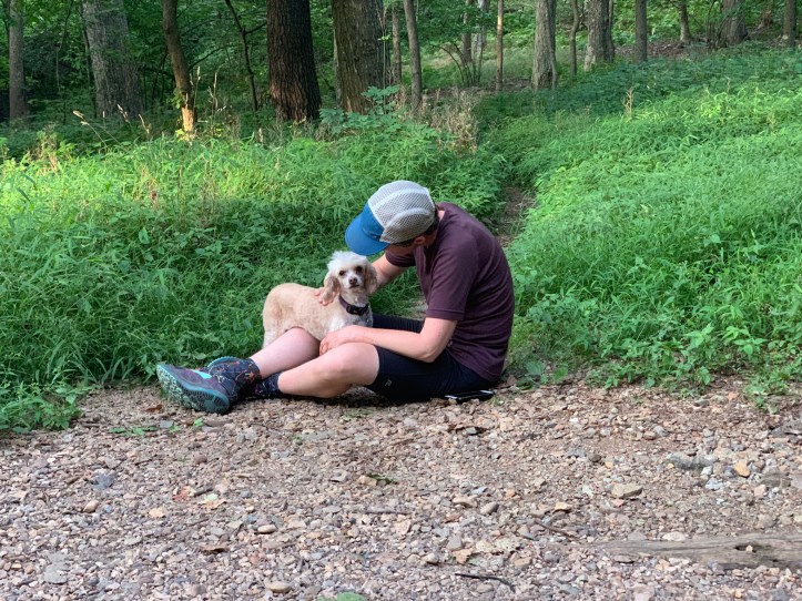 The shelter sat in a holler with tent sites scattered in the surrounding hillside. I went down to the shelter to get my bearings and drop my food in the bear box (thank you SNP). An older hiker named Rock Man proudly announced that he had saved me a spot in the shelter. I kindly said I already had tent reservations. Another hiker named Tara had set up her gear in the shelter and was already sitting at the table preparing dinner under the watchful eyes of her ADORABLE muppet faced dog. I immediately started gushing over the fraggle of a creature named Athena while I pulled out what I would need for dinner. LOOK AT HER: