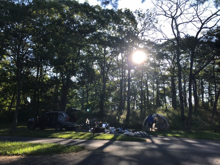 I woke up with a wicked muscle cramp in my side around 1:30am. Very unfortunately, I also had to pee, and it was far too long til morning to wait. I huddled in the dark at the edge of the tall grass and took care of my business by moonlight. A car drove through the campground around 1:45am, which made me laugh because I’d very nearly been caught with my pants down in the middle of the night. It also made me cranky when the person made a second loop through the grounds with their headlights blaring through everyone’s tents. Who drives through a campground at that time of night?? I finally fell asleep and woke up for good around 6:30, which felt like noon compared to my recent spate of early starts. I hobbled to the bathroom and was grateful to have the building to myself for my first visit.