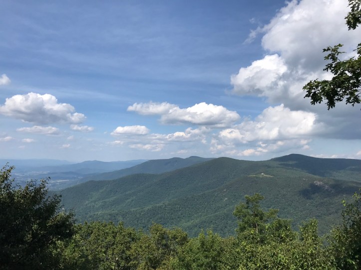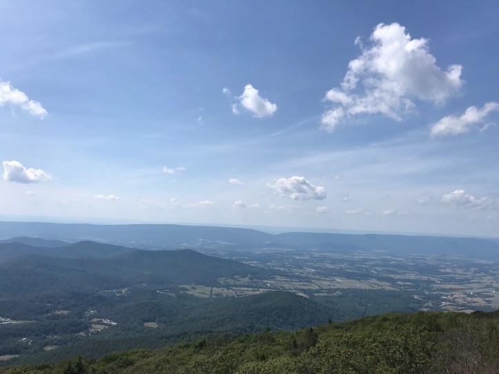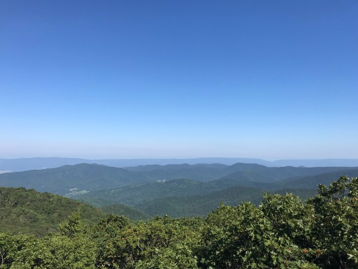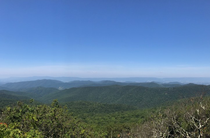 Sprawling layers of mountains met up with a bright blue sky. I admired the view while simultaneously mulling over whether to take the “rock scramble” on the northern half of the blue blaze trail that would eventually meet back up with AT.