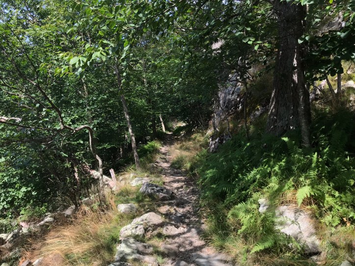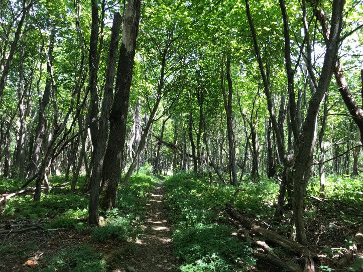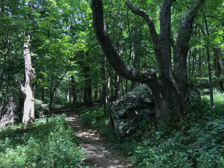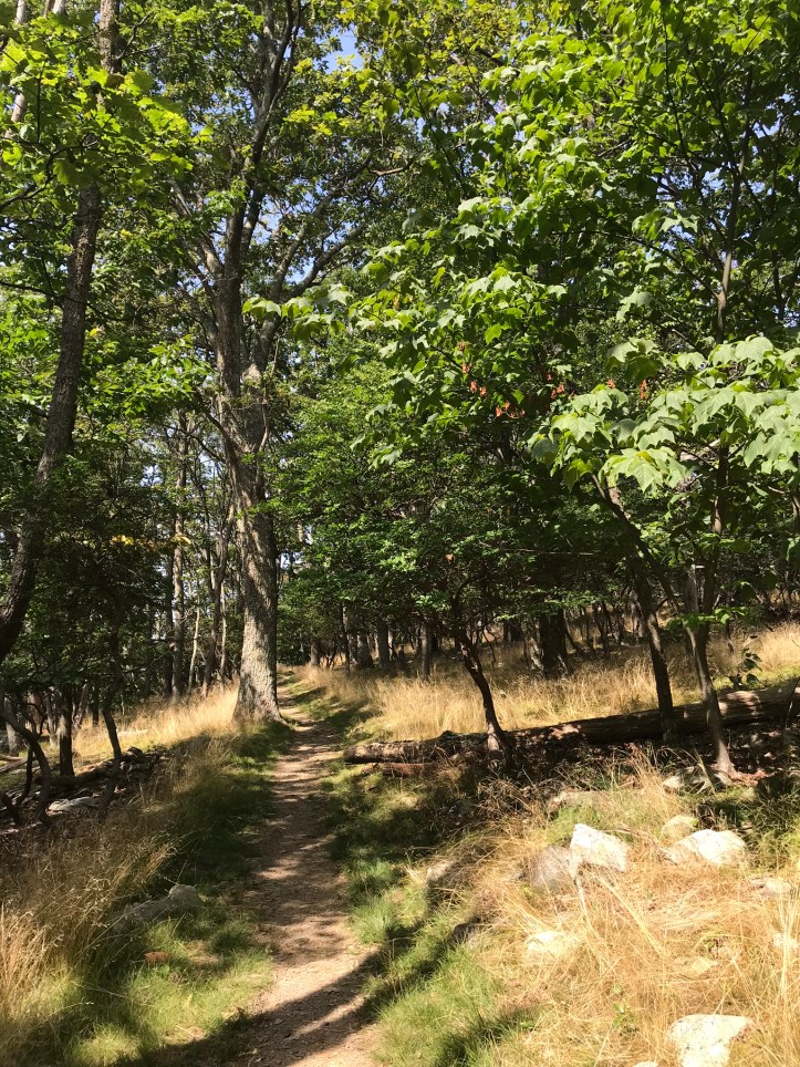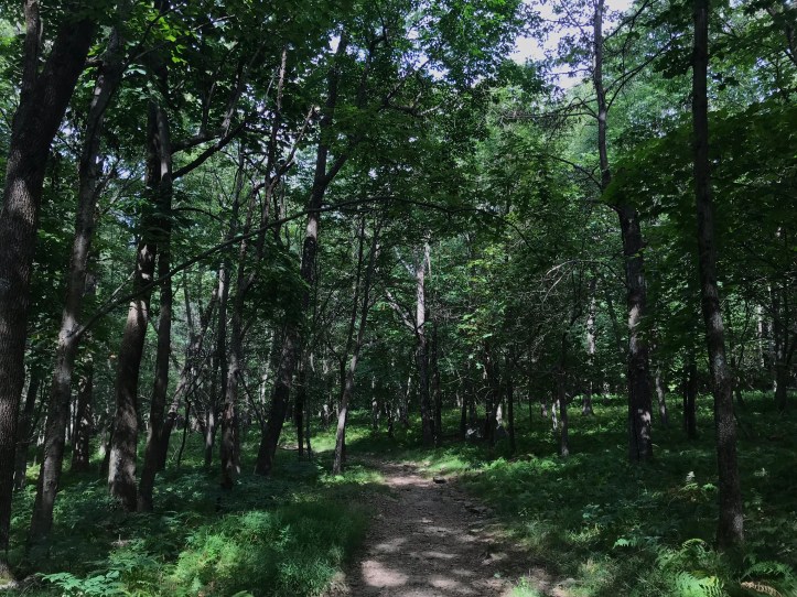 When Oakland and I ended our call, I organized my food purchases from last night and got rid of whatever packaging I could manage while I had easy access to trash cans. I separated out my snacks and took a final stock of what else I needed to buy to get me through my last few days. Then I brushed my teeth, put in my contacts and prepped my feet with their daily dose of body glide. At 9:05am, I walked down the asphalt drive and took the short fire road that led back to the AT. My morning started with easy going terrain and long stretches of gloriously simple hiking.