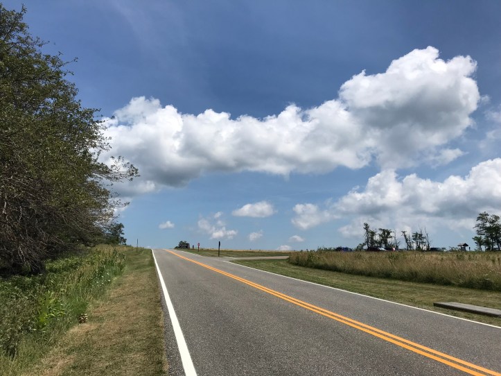 The fire road was uphill for the entire 0.4 miles to Skyline Drive. In retrospect, I have no idea why I didn’t just top-off my food supply at Lewis Mountain. I have a feeling I disregarded that option because they were out of poptarts, which feels like a dumb reason to make a 0.8 mile round trip to Big Meadows. If I had better logic, I didn’t capture it in my notes.