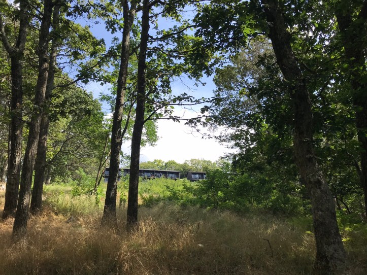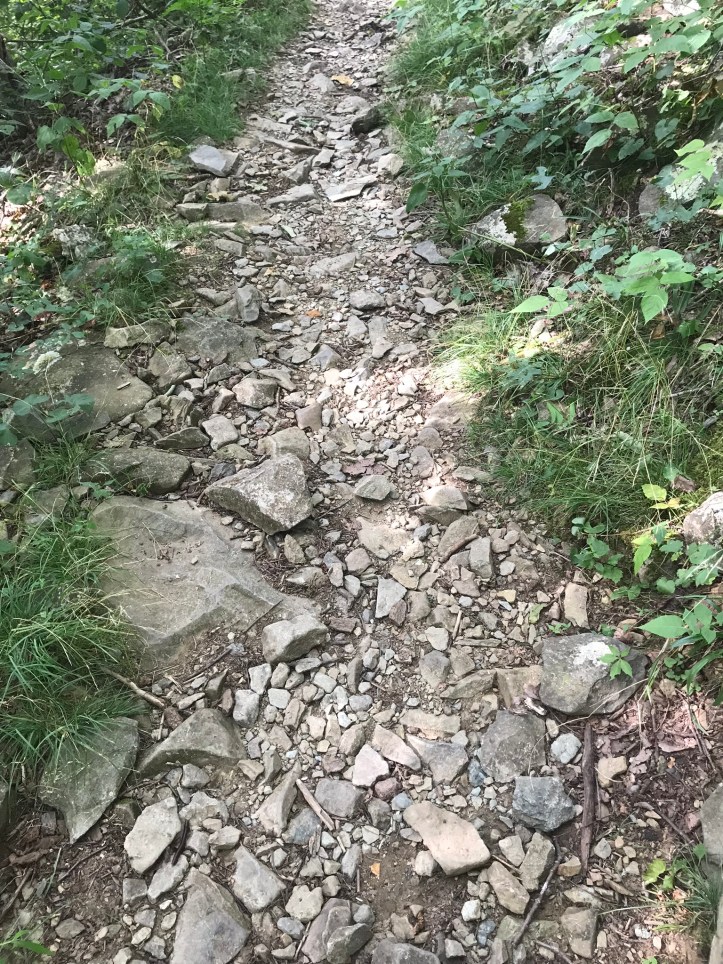 I felt like I’d come slightly unhinged as I moped my way down the grassy shoulder towards the gravel blue blaze. My knees ached as I took tiny downhill steps back to the AT where I took a right to continue north. The trail soon got rockier and dustier, which made me feel like I was back in CA. A long break in the trees to my right gave me a view of the lodge that I had been unwilling to walk to. I continued to cycle through an array of emotions as I hiked, feeling sad and lonely one second and a moment later crying with the relief of being almost done.