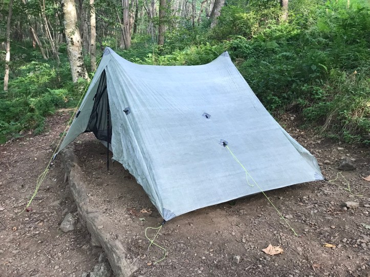I left my dinner ware on the table and took the rest of my gear in search of a home for the night. The tent sites were small and rocky. I made do with one that was on the flatter side and seemed like it would fit my duplex footprint.