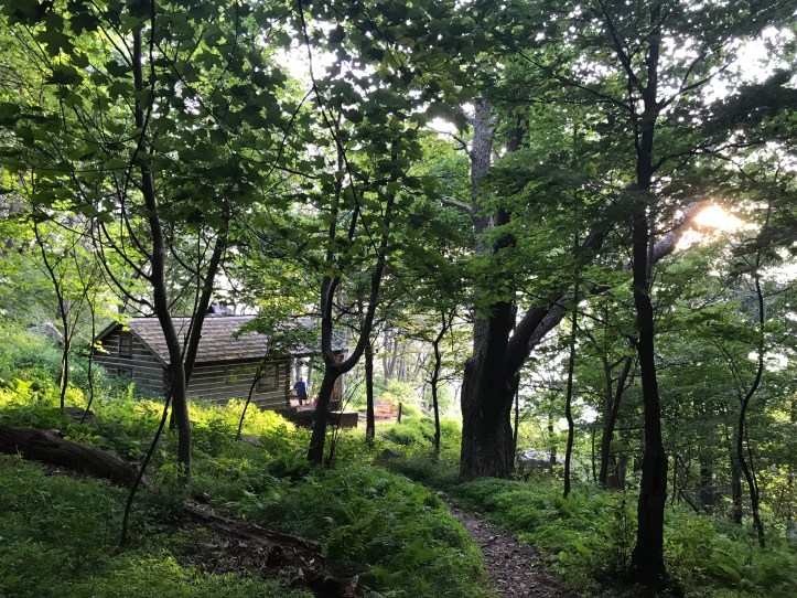We had a friendly but somewhat distracted conversation with the usual hiking related content. Tara and Rock Man are section hikers, one of whom I think was out for the weekend and one of whom was doing something slightly longer than that, but I didn’t write it down. I ate peanut butter and pepper jack cheese as my first course, ramen second (no tuna, hence the need for protein course number 1), and part of a full sized snickers for dessert. I had read in guthook that you could see sunset from the porch of the rock springs cabin, which sat just below the hut on the same trail that led to our piped spring. When I announced my intention for a sunset mission, Tara and Rock man both decided to join me.