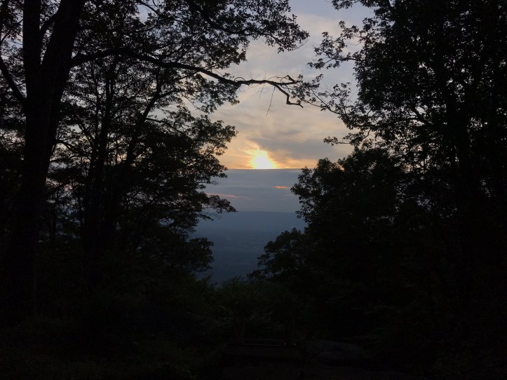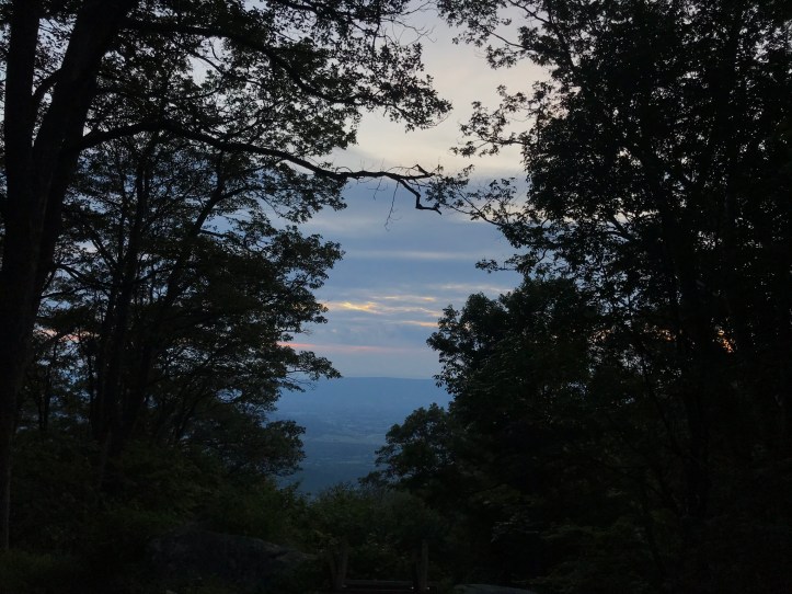 I whined about the hazy, drab sunset while also taking pictures every couple of minutes. Last night there had been deep pinks and reds through the trees at Lewis Mountain Campground, and tonight, when I actually had a view, the sky turned the lightest of yellows before fading to gray. You could barely call it peachy.