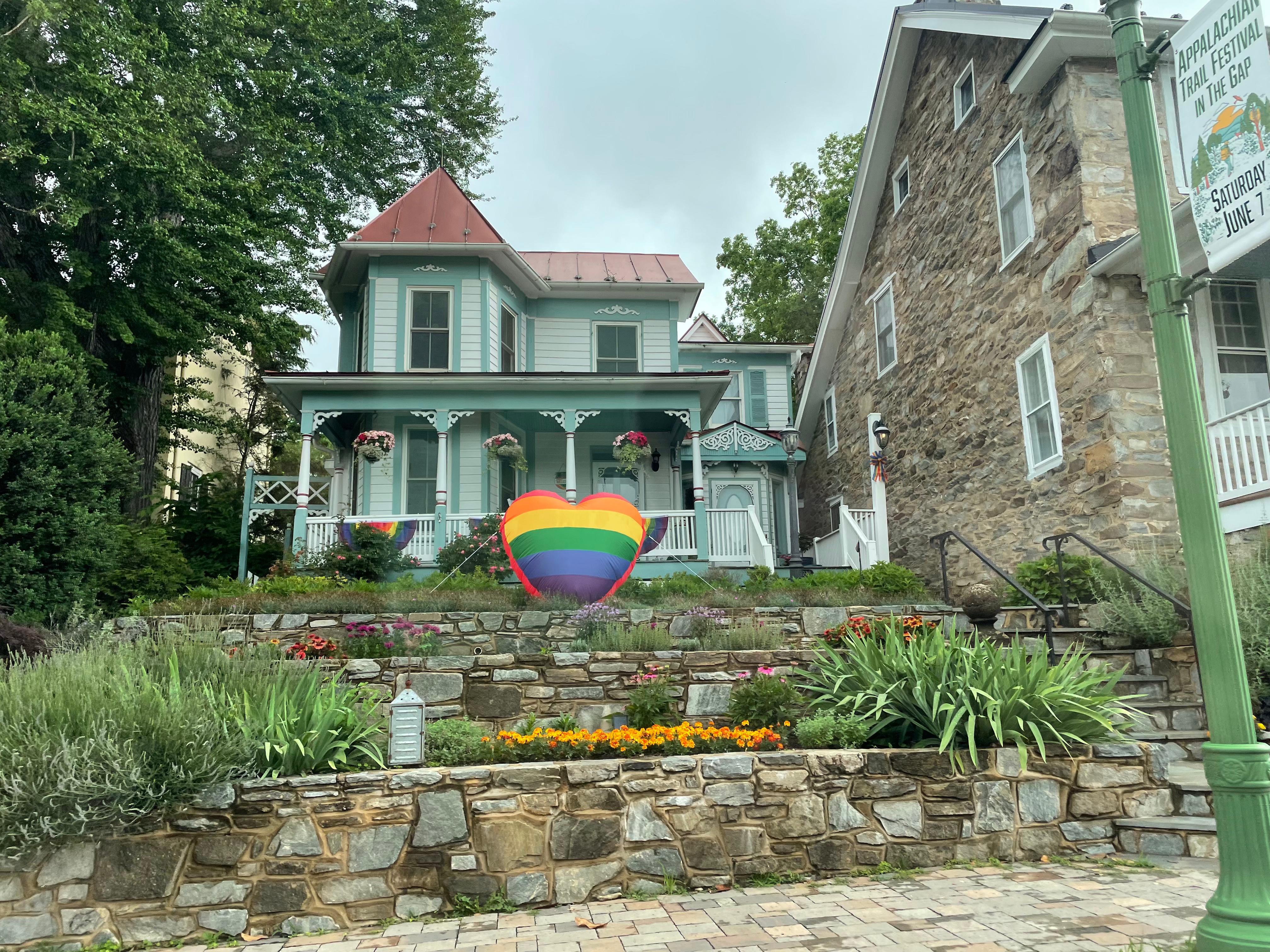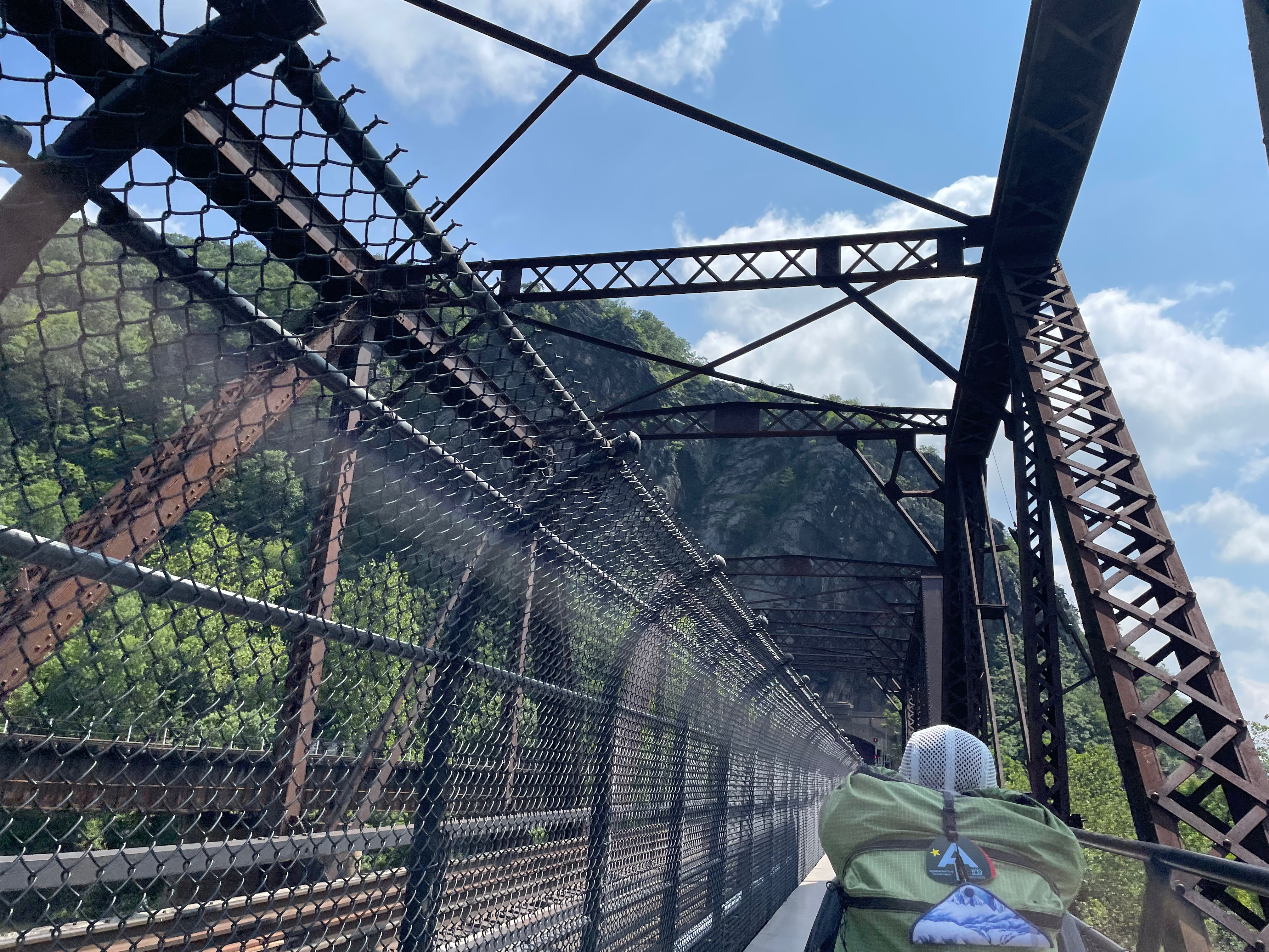 Both beetle and I were apprehensive about how today would go, but we were happy to see the weight of our packs was below the training weight we had carried in CA and skies were bright blue and dry as a bone while HQ drove us to Harper’s Ferry. Pride flags spotted in a small town along the way also buoyed our spirits.