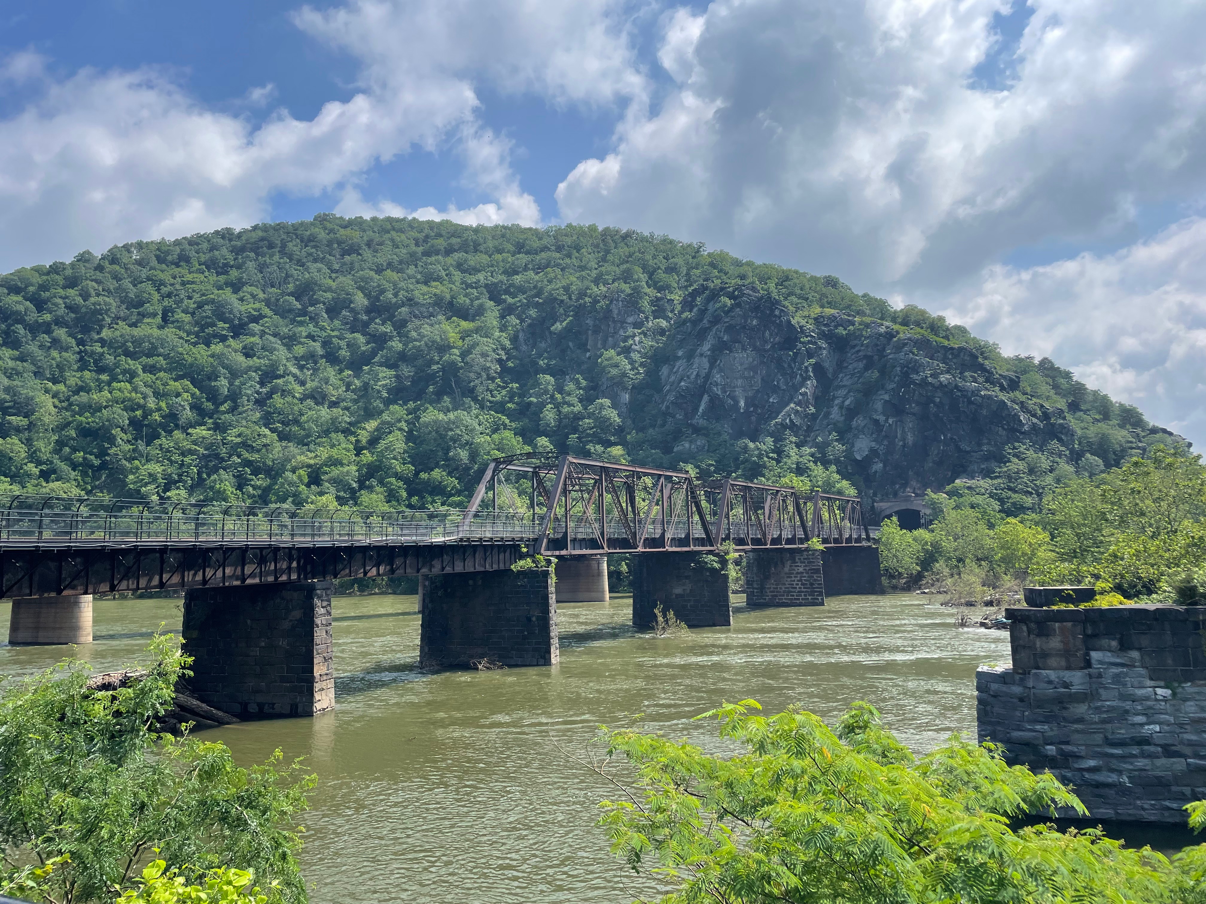 The trip through town was steamy and because of the hourlong drive, we were already hungry. Stopped for a snack near a walking tour and felt sort of like zoo animals. We slathered a layer of sunscreen and headed over the railroad bridge that crosses the shenandoah just before it dumps into the potomac river. So. Much. Water. especially after all the rain VA has had lately.